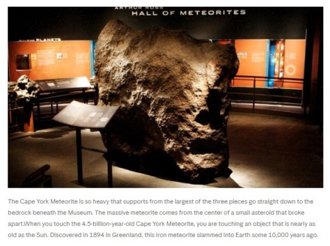 Cape York Meteorite from an impact 10,000 years ago found in 1894.