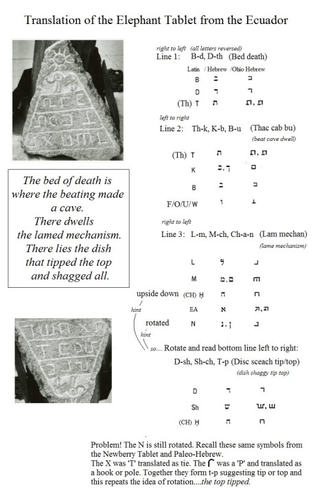 Translation of the Cuenca Elephant Tablet using Ohio Decalogue Stone Style – Hebrew. The bottom line is read then rotated and read again.