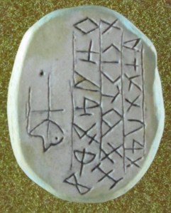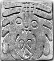 Copy of stone found at Grave Creek Mound, West Virginia, Ohio River. The middle column depicts the up and down triangles.