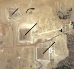- The western and eastern cemeteries at the site appear as small rectangles next to the massive structures. They are clearly visible in satellite images as if they are grids and intentionally put there to give the whole complex true scale.