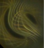 Bloch Wall /Dielectric Plane as seen with Ferrocell (left) and with viewing film (right). Photos by Ken Wheeler, “Uncovering the Missing Secrets of Magnetism.”