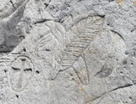 Now that it has been decided what this carving says, an additional bit reveals the artist himself. As stated, the compass provides an O. If the leaves and feather form an M, then perhaps these are initials OM. The date could be 1154 for similar reasons as stated above. The artist names himself and states when he carved this. This is the work of OM and he traveled here in 1154. This OM left other beautiful art work that shall be discussed in another article. So, we add the artist to this interpretation.