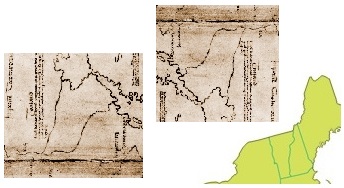 Here is the next task. Find the extra fold line. Now one must ask why would someone make a beautiful and perfect copy of a map to pass off as an antiquity and make oodles of money but ruin it by folding it where there was no obvious reason or need?!?