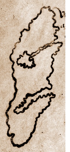 Find the line first. It is just to the left of the fold/damage line running through the first letters of ‘Apusia’ and ‘Maori.’ The first is supposed to refer to Prussia and the second was never fixed to a location. One should be able to see immediately that an anagram begins: ‘A map …usia ori.’ If one looks at this long enough, with the hundreds of other anagrams to be found, one realizes it says ‘A map (of) O. Use IA (for) RI.’ The IA refers to the last letters of the words Apusia and Maori and RI to the place to be depicted.