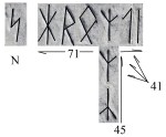 See table at end for rune number equivalents.) The sum of KILSA is 51 and this is a clue. This 51 when doubled as 51.51̊ gives the latitude of a particularly important place. It is left to the reader to locate it. The next word as an anagram for sail is 11(15+9) 10. Take the 15+9 as 159 then add the 11 and 10. Find the sum 180. There are 180 ̊ of latitude and longitude starts and ends at 180 ̊ .