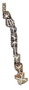 The translation of the runes on SP-1 reverse has certainly not satisfied anyone. It appears it can be broken up as follows: MIL TI (A) KI. This is in simple Old English…mill tie (56) key. From this Mongé derived the message: LIT A MIK or ‘seen by me’. Or perhaps it is actually stating who wrote and inscribed (let) this stone. Read in both directions: ⇒ Me let…I Aki…… I tell ⇐. Altogether it says: