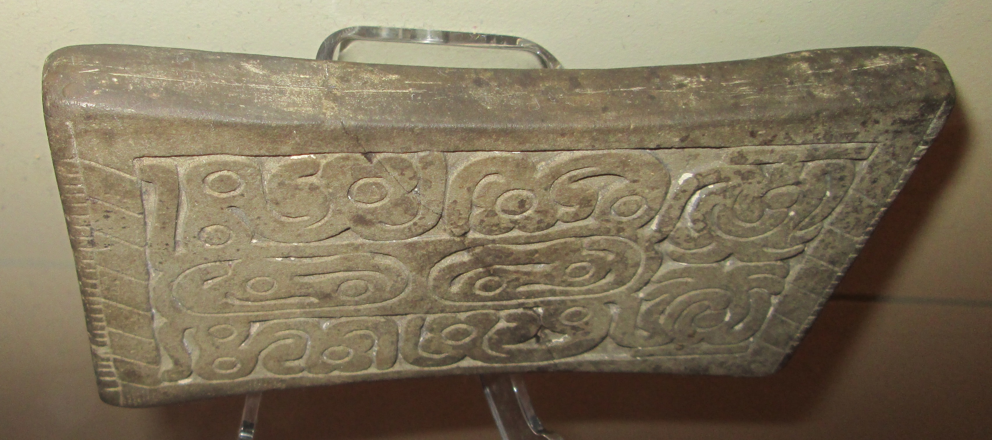 Cincinnati Tablet. Art from ancient Ohio as exhibited. Image darkened to add contrast.